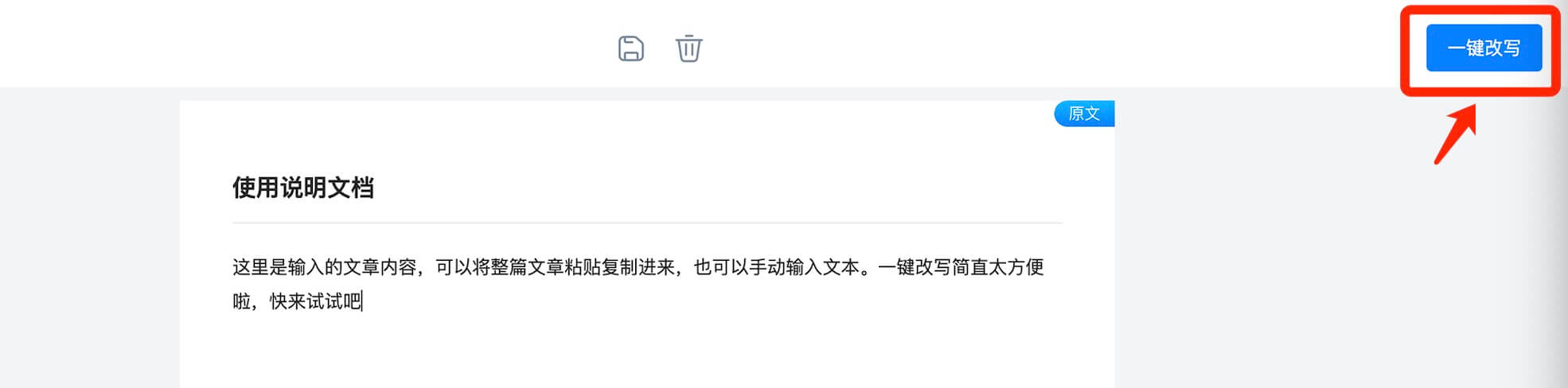在文本框内输入或导入想要改写的文章内容,也可以整篇文章复制到输入框,确定没有要改动以后,点击右上角“一键改写”按钮。